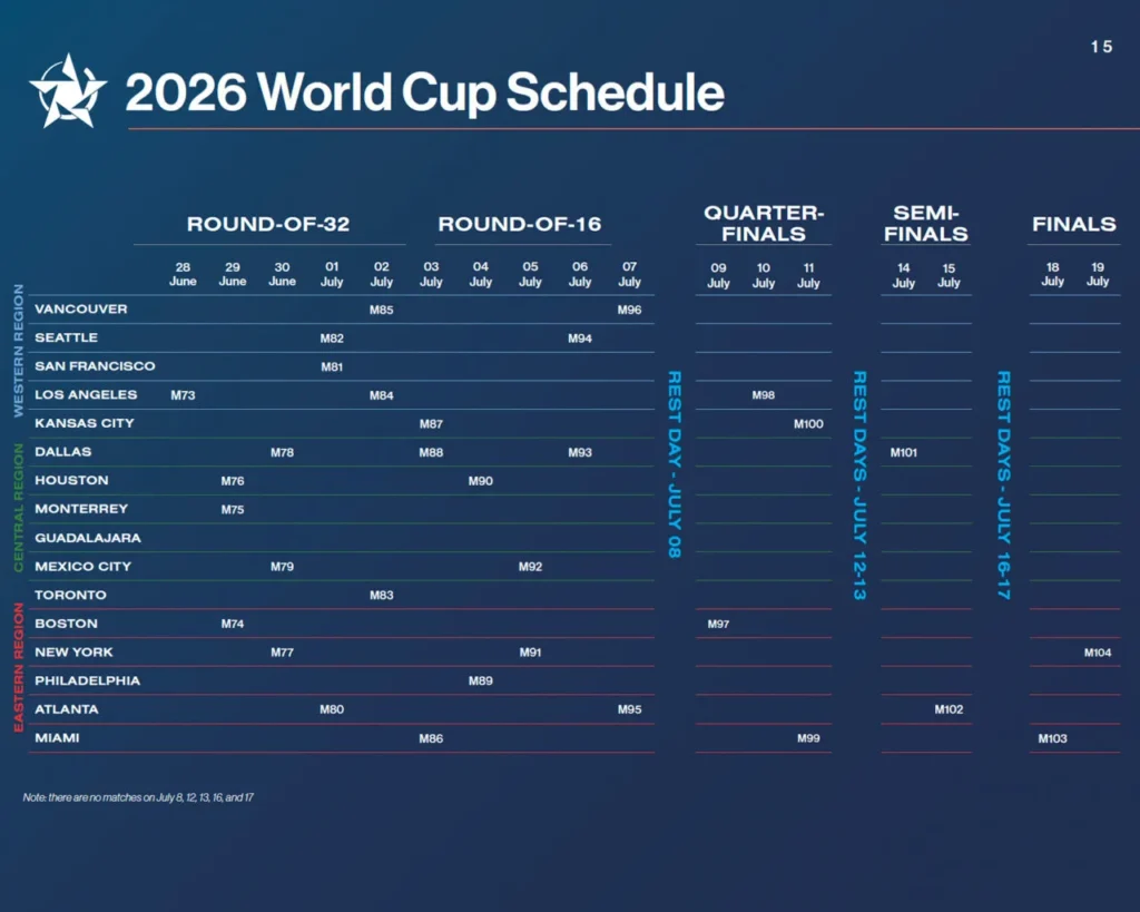 • The games will take place in 16 venues throughout Canada, Mexico, and the USA.