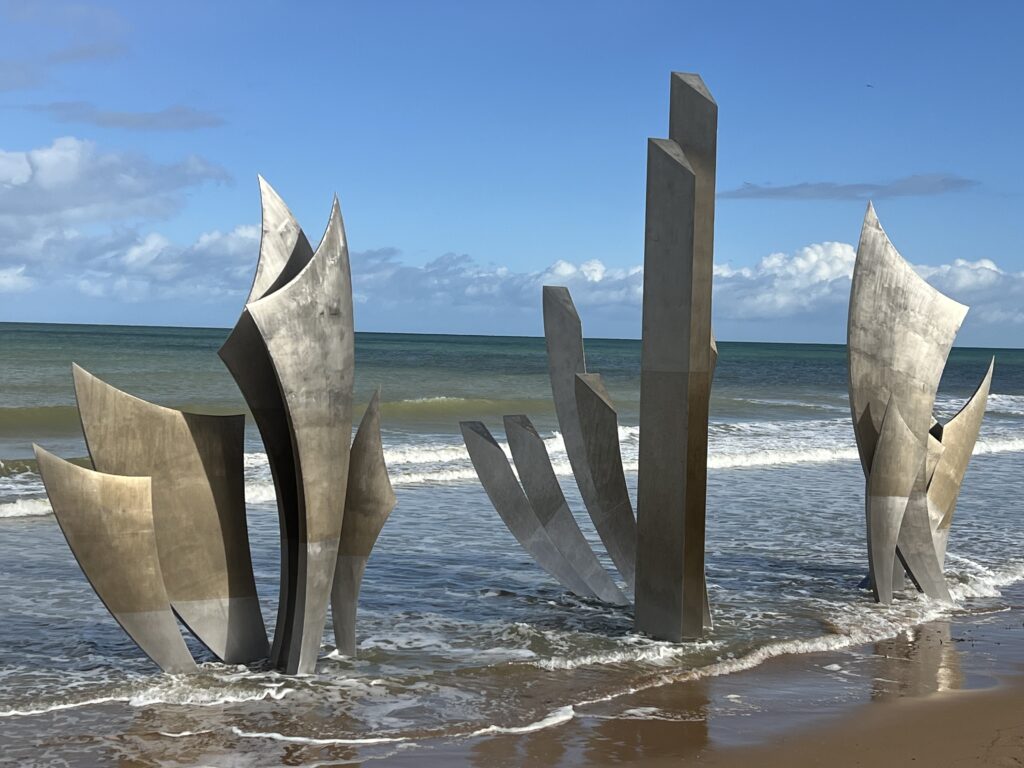 The photo above was taken at Omaha Beach of the monument Les Braves this November 2025 on a river cruise group hosted by Michael & Kelly. Visiting Normandy is always a moving experience and even more so as we were approaching Veterans Day. Here are all of our US Veterans that were traveling with us in our Elegance of France group:
